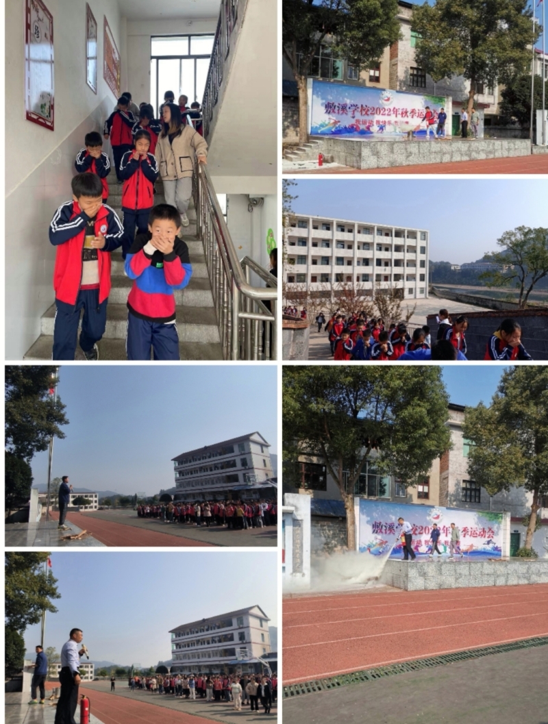 本网讯 11月9日,敷溪学校开展了消防疏散演习。 10:08分,随着火灾警报响起,学校安全工作应急预案随即启动,各岗位值班人员提前到位,疏散演习拉开帷幕。学生们在老师的指引下捂住口鼻,俯身、弯腰从教学楼内迅速有序地撤离到宿舍楼前的操场安全地带,疏散过程紧张、有序。学生到达指定的安全位置后,各班老师立即维持秩序,及时清点人数,确保每个学生安全到达。 疏散演练完成后,工会主席李运临给大家详细讲解并演示灭火器的正确使用方法和应急灭火技巧,概括出“五步灭火法”一看二摇三拔四瞄五喷。并组织了灭火体验活动。师生、保安、宿管以及食堂工作人员共同参与其中,都表示受益匪浅。政教处罗敏俊主任再次宣讲了消防知识,强调了消防安全。 生命无演习,防患于未“燃”。本次消防疏散演练,使全体师生增强了消防安全意识,增加了消防自救知识,筑起了一道生命“防火墙”,为创建平安校园提供了强有力的安全保障。(通讯员 黄晶)
