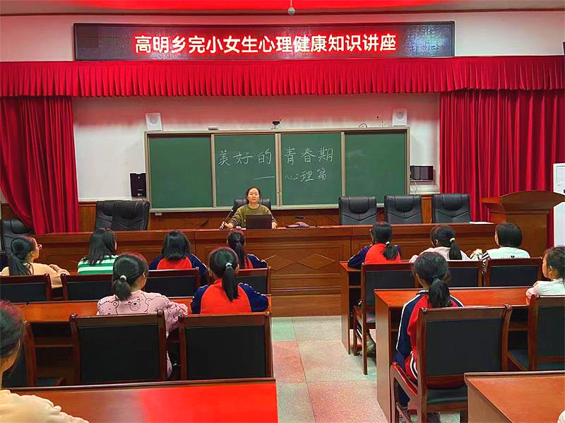 本网讯 10月25日晚,高明乡完小开展了“关爱女生,呵护成长”为主题的心理健康知识讲座,由该校心理辅导老师刘飞主讲。 刘老师根据青春期女生生理、心理发展特点,结合大量心理学知识及实例,详细讲解了青春期发育、卫生保健等知识,并就如何正确认识青春的烦恼、如何保护自我、尊重隐私、学会调节心理状态等方面作细致讲述。 本次讲座为女生们解答了很多关于自身生理、心理的隐秘问题,解除了许多因生长发育带来的困惑和苦恼,学到了许多自我保护的知识,对五、六年级女生健康成长起到了良好的引导作用,为她们的青春健康成长实现了一次成功的护航。