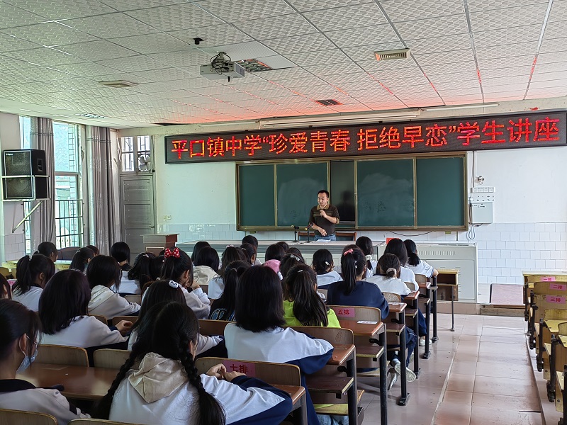 本网讯 10月18日下午1点,平口镇中学组织特殊女学生在五楼多媒体教室,召开以“珍爱青春,拒绝早恋”为主题的教育讲座。校长蒋苏会、副校长李秋庭出席,教导处主任夏晓新主讲。 夏晓新用亲切的语言从“何谓早恋”谈起,结合过往中学生早恋的真实案例,让学生认识了早恋的成因,了解了早恋对青少年的危害以及如何正确对待早恋。李秋庭表示,女同学在和人交往时要提高自我保护意识,加强自律、学会自强、提高自信,做一个健康快乐的女生。蒋苏会总结:“我们以自己想要的生活为目标,在合适的年龄阶段做好该做的事,不负青春,努力前行。” 此次讲座提高了该校特殊女学生正确对待早恋的认识,加强了特殊女学生的自我保护意识。(通讯员 夏玲玲)