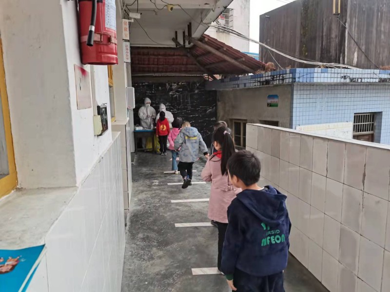 本网讯 10月9日上午,滔溪镇卫生院派出4名采样医生来到滔溪镇完小,为全体师生采集核酸,排查国庆假期后学校感染风险,为广大师生构筑疫情防控安全屏障。 该校严格按照防控要求布置采集点,核酸采集小组的医务人员全副武装,认真做好采集前的准备工作,确保采集过程安全有序。 “抬头,张嘴,啊……好啦!”医务人员一边正确引导被采集者,一边迅速完成咽拭子标本采集,整个过程,前后不到20秒。核酸采集工作在医务人员熟练的操作下,高效且有条不紊地进行着。经过两个多小时紧张有序的努力,核酸采集小组顺利完成了全校师生的核酸采集工作。 据悉,10月6日、7日,该校安全专干等按照上级要求专题部署国庆假期后师生员工返校的疫情防控和安全稳定工作,严格落实疫情防控各项措施,抓好师生假期返校途中和师生返校后的防控关键期,跟进师生员工的健康状况、核酸检测情况,全面排查教职工健康码,收集学生身份信息,坚决守住疫情不流入校园的底线。
