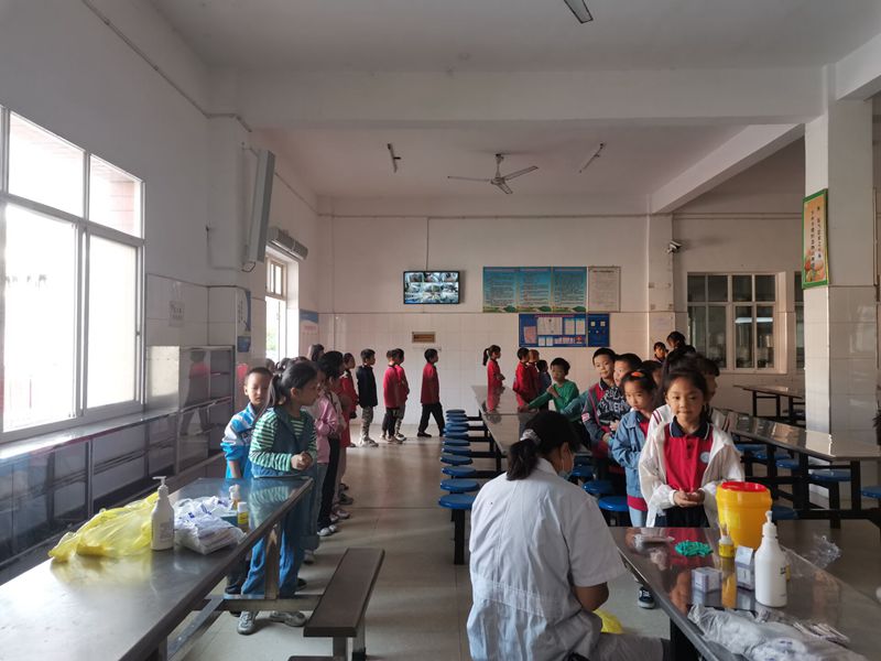此次检测活动在该校政教主任肖思洁及班主任、医护人员的指引下,分班次、小组完成。在监测过程中,高年级同学秩序井然,低年级学生勇敢坚强,部分小朋友对扎手指感到有点害怕,班主任和医护人员在旁鼓励安慰,气氛温馨。
