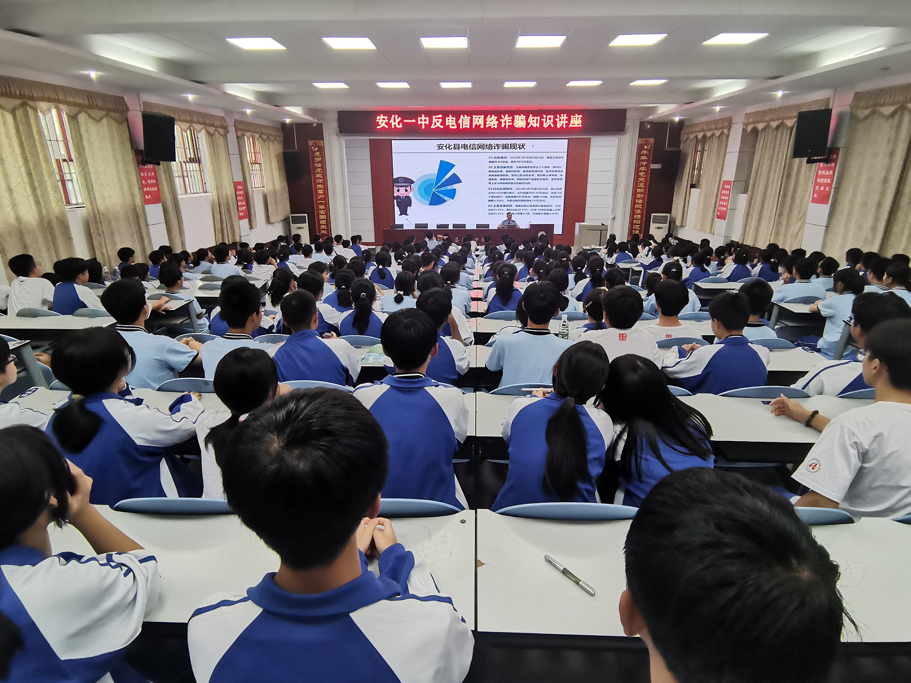 本网讯 9月27日,安化一中联合县公安局举办的反电信网络诈骗知识讲座在培英楼多功能报告厅举行。本次讲座由县公安局反电诈中心主任熊壮源主讲,学校200多名师生参加了本次活动。 熊壮源通过介绍电信诈骗概念与特点,结合安化县电信网络诈骗现状对电信网络诈骗的基本情况进行了解释与说明,并通过真实案例的讲解向师生们普及了当下电信网络诈骗的基本形式,警示大家提高警惕,不要轻信他人。他重点强调并讲解了针对在校学生实施的新型诈骗手段,提醒大家不要被“骗子话术”蒙蔽,因小失大,追悔莫及。同时提醒大家在加强防范的同时要严格遵循预防诈骗“五不要”,被骗后及时采取补救措施,并且做到洁身自好,坚决拒绝成为电信诈骗中的一环。 知识讲座结束后,熊壮源与部分同学进行了更深入的交流,针对他们遇到的情况进行了详细的分析,提醒他们要提高反诈意识,遇到疑似电信诈骗的情况要及时上报学校或公安机关反电诈中心。(通讯员 侯文静) |