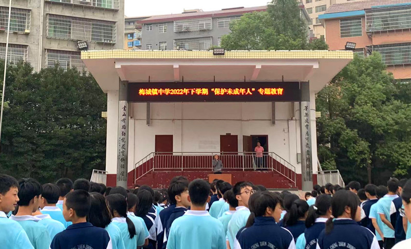 本网讯 9月25日,梅城镇中学开展了未成年人保护法宣传教育活动。