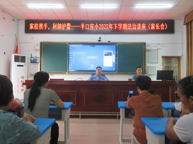 本网讯 9月8日上午,在平口完小多媒体报告厅,面对两百余名家长,以及二十多个分会场(教室)的1000多名家长,平口派出所副所长黄硕夫通过视频系统发表对未成年人教育的看法。他跟家长们分享了亲身办理的几个案例,有用棍棒教育这种方式教育孩子的,最后孩子因犯法受到刑事处罚;有父母对小孩疏于管教,导致小孩不到十四岁被社会上的混混诱骗而怀孕的等等。家长们听课非常认真,黄硕夫敦促家长们要履行好监护职责,切实维护未成年子女的合法权益。会议结束,家长们表示今后尽量要多花时间陪伴孩子,教育好孩子,让孩子健康成长。 据悉,为进一步加强学生的法治教育,平口镇党委政府有序推进“利剑护蕾”专项行动,依法保护未成年人权益,当天平口镇社会治安应急管理办公室联合平口派出所在平口完小开展法治教育进校园活动。借此契机,平口完小校长张彩红对此次家、校、公安“利剑护蕾”活动提前进行了安排,同一天学校德育处联系平口车站派出所警察来校给家长们进行了铁路安全知识讲座,平口中心校副校长伍文才也在会上和家长们进行了交流。该次家、校、公安联系会强化了宣传教育,着力营造了依法严惩性侵未成年人犯罪、呵护未成年人健康成长的浓厚氛围,为未成年人健康成长保驾护航。(通讯员 周乐斌)
