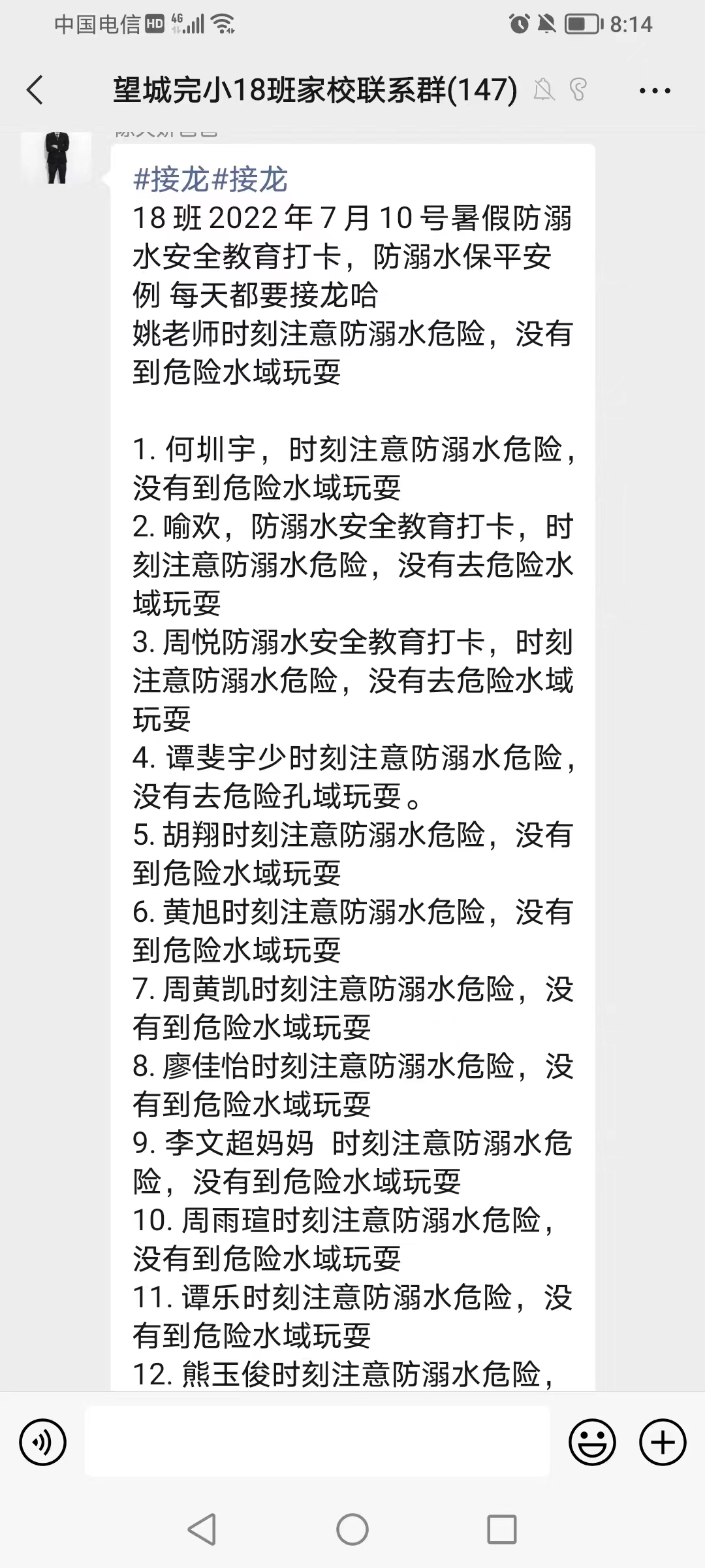 本网讯 7月9日上午,梅城镇望城完小召开暑期防溺水工作部署推进会。会议由政教主任、安全专干吴琪琦主持,该校全体班主任和相关行政人员参加会议。 吴琪琦首先通报了近期发生的溺水案例,传达了县教育局、镇中心学校关于防溺水工作的具体要求,要求班主任要认真落实防溺水规定动作要求,并每天对学生进行防溺水警示教育,通过QQ群、微信群密切家校联系,明确提出防溺水工作的具体任务,要做好安全教育的有效性和防范措施的实效性,坚决杜绝学生溺水事故发生,要求全体班主任要有效拓宽宣传覆盖面,开展覆盖全体学生的大家访,防溺水宣传要形式多样;要增强安全防范意识,拉网式排查辖区易发生溺水事故的地段,及时做好登记,构筑群防严密防线,全力预防溺水事故的发生。 该校党支部书记、校长李兴家就学校的防溺水工作进行了再强调:一要统一思想,高度重视,进一步提高安全工作重要性的认识;二要明确任务,从严管理,落实好学校布置的安全工作措施;三要加大宣传,压实责任,落实任务清单。全体班主任老师要充分利用网络丰富的教育资源,让学生和家长一块儿学习防溺水等安全教育知识;通过微信群、大家访等方式,不厌其烦地向家长进行安全教育知识的普及、宣传,切实增强家长预防未成年人溺水的安全意识和监护人的责任意识;扎实做好向家长、学生宣传普及防溺水知识,切实增强学生及家长的安全防范意识和自救自护能力。 珍爱生命,预防溺水。此次会议再次绷紧了全体教师防溺水工作这个弦,为学生健康成长筑牢一道安全屏障,同时也为促进平安校园建设,起到了积极的推动作用。(通讯员 李咏如)