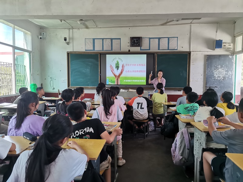 本网讯 6月28日下午,羊角塘镇中学组织七、八年级学生开展了以“手拉手共拒无情毒品,心连心齐创和谐校园”为主题的禁毒宣传教育活动。 本次活动采取学校统一内容,各班分班组织的形式开展。活动中,班主任组织同学们探讨了“怎样识毒、如何拒毒”的相关知识,在一定程度上为学生扫除了有关“禁毒”的知识盲点,提升了学生对毒品的识别能力,学生学到了巧妙拒毒的自我保护方法。班主任老师采用图文并茂的方式向学生展示了一些惨痛的吸毒案例,让学生清楚明白“为何禁毒”,警醒学生树立牢固的禁毒意识,团结一心手拉手,共拒无情毒品,相亲相爱心连心,齐创和谐校园。(通讯员:黎娟)