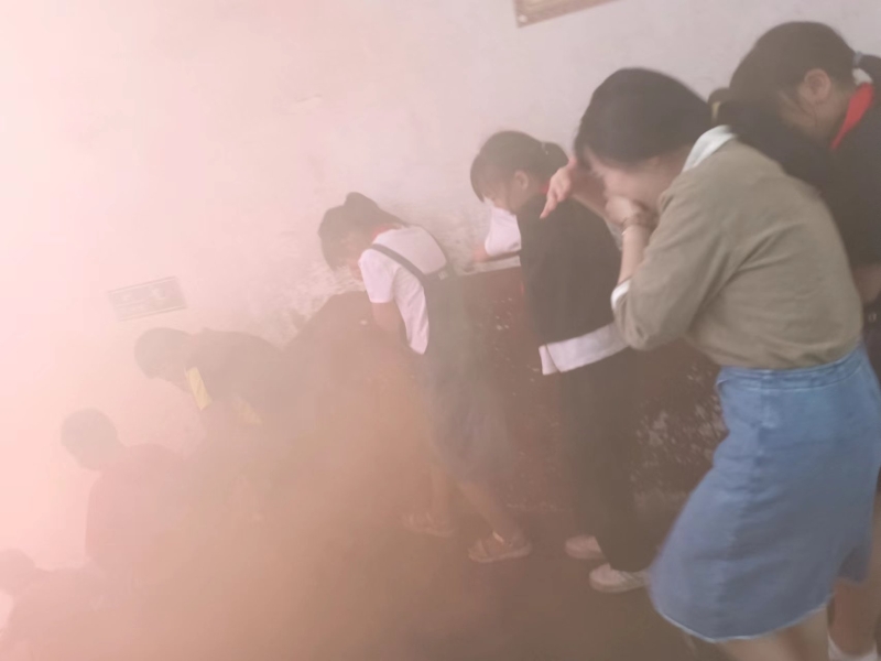 演练开始了,警报声响起的同时,肖海鹰在教学楼楼梯间打开了模拟烟雾弹,楼梯间瞬间烟雾缭绕,听到警报声的学生迅速有序地从教室跑出,排队下楼,十个班级,井然有序,整个过程仅仅花了一分三十秒。