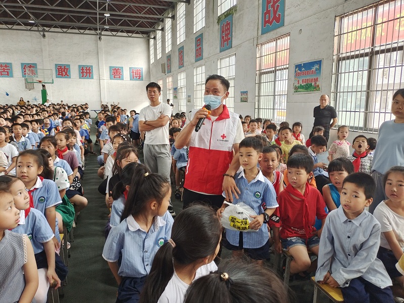 本网讯 6月10日上午,安化县红十字会应急救援队队长谢健一行七人走进东坪镇木子学校,为该校近千名师生进行防溺水应急演练活动。 活动中,谢健用问题“你们认为我们身边哪些地方存在溺水的危险?”展开话题,引导学生思考,利用奖品提高学生的积极性;并以周边溺水、溺亡事件为例,分析了溺水、溺亡事故的原因及危害,向全体师生普及防溺水知识,让学生对如何预防溺水有了进一步的了解。接着工作人员拟设模拟场景:有人落水后怎样运用长棍、绳子、漂浮物进行自救、互救及他救;请学生进行现场演示,指导学生进行互救、自救的防溺水实践操练,最后,工作人员现场演练“人工呼吸及心肺复苏”的急救方法。 此次活动,学生能踊跃参与,在紧张有序的现场模拟演练中掌握了在溺水时自救、互救、他救的办法,提高了学生遇到紧急情况时的应变能力和实际操作技能。(通讯员 王艳)