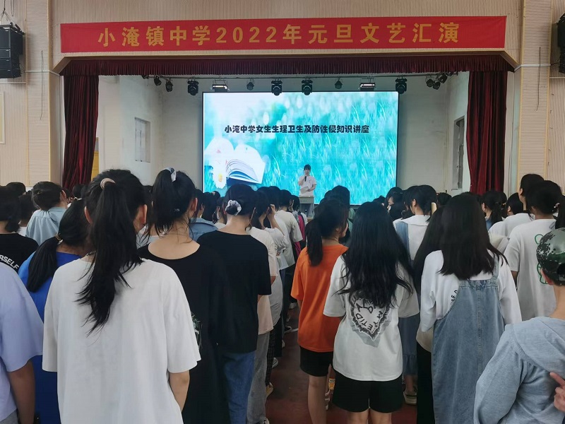 本网讯 6月8日第八节课小淹镇中学组织七、八年级女生在风雨球场上了一节女生生理卫生及防性侵专题课,所有班主任到岗到位。