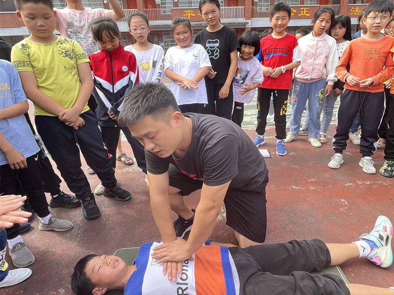 本网讯 5月25日,羊角塘镇文昌阁学校组织学生开展防溺水安全教育演练。 演练开始前,该校政教处主任王荣锦进行了活动方案讲解,安排了活动角色,提出了活动要求。演练模拟两个场景开展,情景一:学生在水塘边玩耍,一学生不小心落水。情景二:有学生伸出手去援救,想要将落水的同学拉上岸,被另外的同学及时制止。演练中,同学们充分利用“岸边”的绳子、竿子、篮球等物品进行救援,最终成功将溺水同学救了上来,并马上对已经晕厥的同学进行胸肺复苏救援。 活动结束后,该校副校长李小平进行了防溺水安全教育,并组织学习安全救援的方法及措施,让学生们更加深刻地掌握了自救及救援方法,进一步增强了学生安全防溺的意识。(通讯员:贺彪)