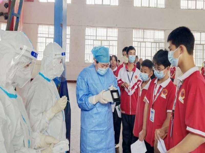 本网讯 5月10日上午,天下着蒙蒙细雨,在安化县江英学校风雨球场里,五、六名身着防疫服的疫情防控人员和医务人员正在依次地给该校的全体师生作核酸检测。 据了解,自5月8日上午开始,该校3000多名返校师生按照学校的统一部署,在学校学生处的精心安排下,分中小两部、分年级、分班级,按时间节点,排队依次进入风雨球场,接受卫生防疫和医务人员的核酸检测。 据该校安全专干孙柏林介绍,学校自春季开学以来,在每次月假收假后,学校都按照上级主管教育部门和疫情防控部门的严格要求,面对疫情不放松,重管理,严措施。一是强抓门卫安全管理,做好进出师生的健康码“扫描”,严禁外来人员进校,严禁外来物品存放,筑牢校园安全岗亭“堤坝”;二是加强家校协作,学校每次在放月假前都与家长或监护人进行好疫情防控“沟通”,以家长学校群或给家长们的一封信,达成家校疫情防控协议,坚持学生返校“两点一线”管理,家庭人员实行“公筷制”管理,坚持戴口罩管理,坚持不出门管理;三是加强校园安全管理工作,学校在收假前都要组织安全员、保安员和医务人员对校园内的各个角落,重点区域和场所进行全面消毒,确保校园内的安全。(通讯员:李峰 孙柏林)
