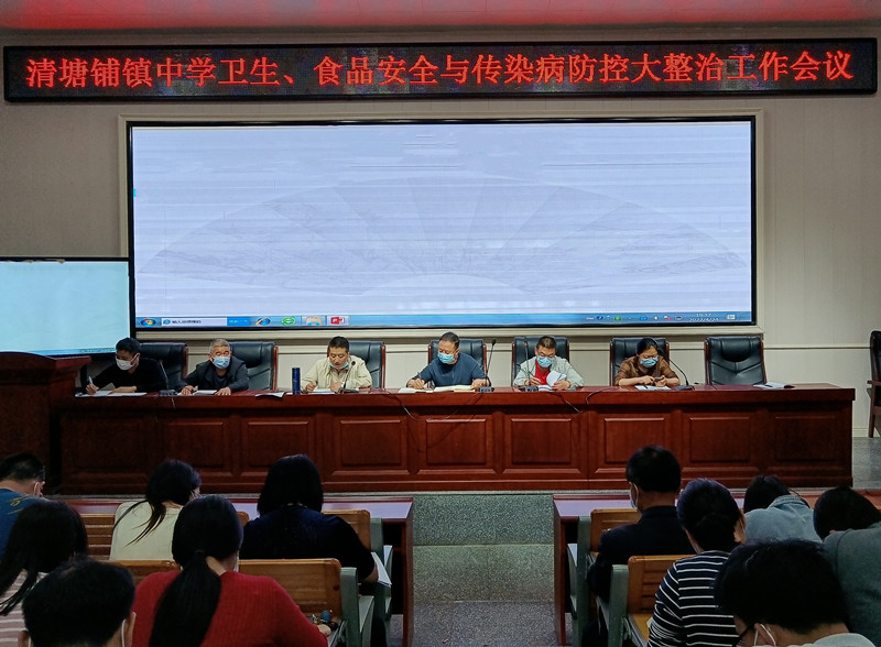 本网讯 4月24日晚,清塘铺镇中学在学校多功能报告厅召开学校卫生、食品安全与传染病防控大整治工作会议。全体教职工参加,会议由校长谭宏光同志主持。 政教处主任周伟宏认真组织学习了学校卫生工作条例、食品安全与传染病防治知识。谭宏光传达县局相关会议精神,他指出,学校卫生、食品安全与传染病防控关系到师生身体健康,关系学校教学秩序正常开展,全体教师要切实提高责任感和紧迫感,加强防控意识,明确防护、上报及处置措施,要天天重视、长期重视,各班要扎实开展安全教育,全面提升学生防护意识,真真正正做好晨午检、学生因病缺勤追踪等工作,全面落实“一岗双责”,坚持严字当头,坚决施行问责、追责制度,扎实筑牢校园安全防线,确保学校平安稳定。(通讯员:张剑文)