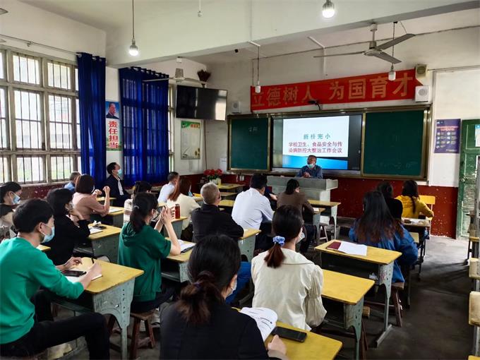 本网讯 4月25日,大福镇新桥完小组织全体教师召开学校卫生、食品安全与传染病防控大整治工作会议,校长伍新民主持主讲。 会上,伍新民传达了上级会议精神,强调此次会议的重要性。对食堂卫生和教室卫生分别提了8个要求:进一步强化了责任,努力建设卫生无死角、窗明几净、优雅舒适的校园环境。培养师生良好的卫生习惯,让大扫除进课堂,每周一次,加强劳动教育等。食品安全要把好采购关、加工关,煮熟煮透洗干净,消毒留样防鼠蝇等。传染病防控要常态化,同一症状3例以上及时上报,有事报事无事报平安,晨午检跟踪追查,及时处理异常情况。最后,对安全隐患大排查、召开从业人员会议、重点人群的监管分工等工作做出具体安排。 此次会议特别强调了大家平时容易忽视的许多问题并提出整改方案,倡导大家齐心合力,共同守护校园的一方平安。
