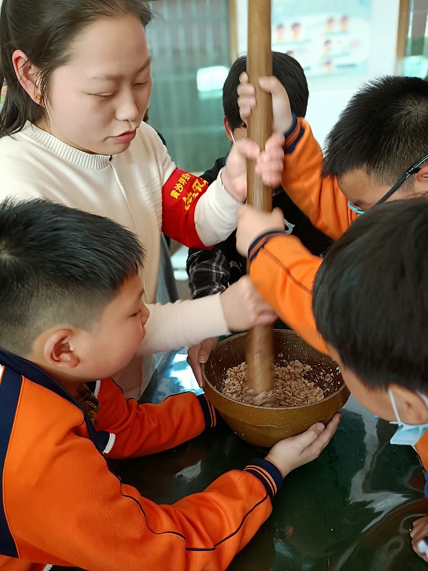 4月20日下午,黄沙坪完小由该校季候物语特色课程牵头,师生一起打擂茶,喝擂茶,一起度过了一个别开生面的谷雨节。 “好喝,我能喝七碗。”“好香,我能喝五碗。”“我从未喝过这么好喝的擂茶。”经历了辛苦的劳作,学生端着亲手打的擂茶,发出了满足的感叹。五年级学生扶辉宇表示“长这么大,第一次认识了茶树,亲手采摘的茶叶擂出的擂茶就是香。” 该校林美花校长表示:“通过本次活动,学生亲身经历了擂茶制作的过程,体验到了劳动的艰辛,收获了成功的喜悦。学生的成长是个漫长的过程,我们将以特色促发展,紧跟时代步伐,静待花开。”(通讯员 廖玲琴)