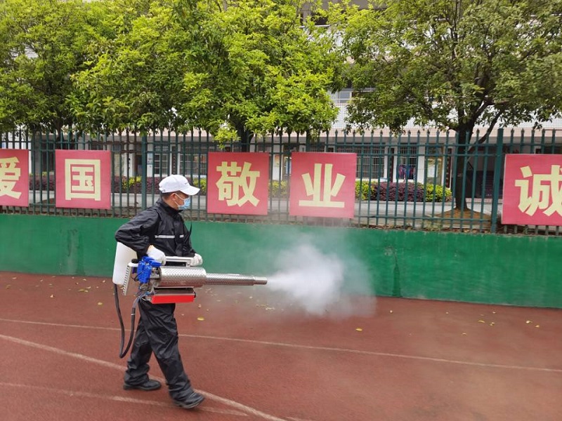 本网讯 “轰轰轰轰……”一大早,安化县江英学校的校园内,消毒喷雾器的轰鸣声再次响起。这是该校为落实县局的防疫要求,再一次对校园进行彻底的消毒。 4月13日是该校结束月假、师生返校的日子。为给师生营造安全卫生的校园环境,保障师生的生活安全,学生处主任兼安全专干孙柏林和学生处干事杨理军老师,穿着自制防护装,戴着帽子和口罩,身背调剂好的消毒药水,手持消毒喷雾器,再次对校园内的公共场所进行彻底的消毒。消毒工作覆盖到每一间教寝室,以及田径场、校门口和校园大道等。轰鸣声持续了将近两个小时,响遍了校园的每一个角落。当他们放下沉重的喷雾器,脱下雨衣时,人们才发现汗水已经浸湿了他们的头发和衣物。 消毒工作结束以后,他们又率领学生志愿者,坚守学校大门,细致地给每一位返校的学生检测体温,检查“三码”,给书包、行李喷洒消毒酒精,还帮助同学们将行李送到寝室,确保“家长不进校”和“行李没消毒不进校”,将防疫工作做得万无一失。前来送行的家长不仅对师生志愿者们的贴心举动赞不绝口,还纷纷表示,学校有如此周密的防疫措施,他们对自家孩子的安全非常放心。(通讯员 刘圣彦 李坤)
