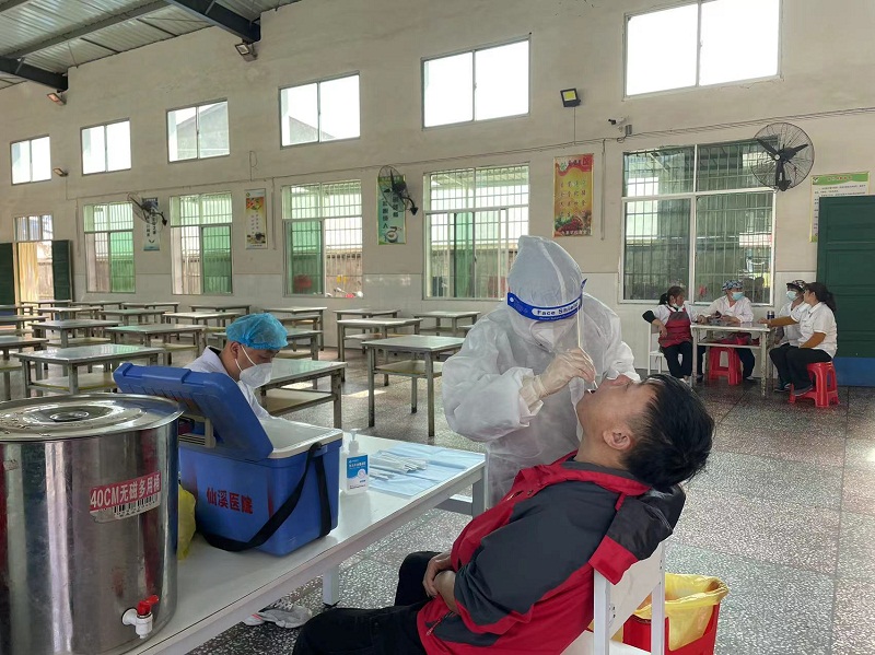 本网讯 4月11日上午,九龙学校全体教职工在学校食堂进行核酸检测,仙溪镇中心学校分管安全副校长姜勇平、安全主任肖高峰到现场进行指导。 上午十时许,仙溪镇卫生院公卫办站长吴准星及相关医护人员准时到达九龙学校,在该校安全专干张允毅的组织下,全体教职工按照指定路线,间隔一米排队静待检测。工作人员分工明确,流程有序衔接,检测速度超预期。 据悉,为做好本次教职工的核酸检测工作,该校召开了全体教职工会议,张允毅带领大家熟悉了相关流程,确保全员核酸检测顺利完成。 此次核酸检测是一次疫情防控的排查,更是一道确保九龙学校全体教职工安全的重要保障,感谢医务人员及中心校领导对该校的辛苦付出。该校将一如既往做好常态化疫情防护工作,严格筑牢疫情防控安全网,为全体教职工的生命安全保驾护航!(通讯员 方学文)