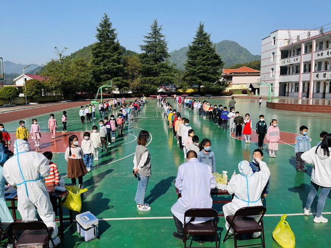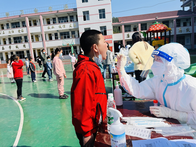 本网讯 4月7日上午9点,烟溪镇新开完小在学校操场组织500余名师生员工进行全员核酸检测。 “外防输入、内防反弹、以人为本”。正式采样前,学校召开专题班主任会议,要求加强宣传引导、收集健康码、实名造册、精心组织、压实工作责任,全力完成此次核酸检测工作。 在核酸检测临时采样点现场,医务人员装备完善,严格落实个人防控要求,核酸检测采样过程,按照规范流程严格操作。 全校师生错时错峰按秩序组织学生进行核酸检测,积极响应配合学校工作。所有师生员工佩戴口罩,自觉遵守秩序,服从指挥,有序排队,保持一米间距,分组检测,即采即走,整个过程有条不紊,秩序井然,核酸检测工作高效、高质完成。 该校校长伍琼军说,作为教育人,要始终把师生员工的生命安全和身体健康放在首位,严格做到“应检尽检,不漏一人”,全力保障校园安全稳定。