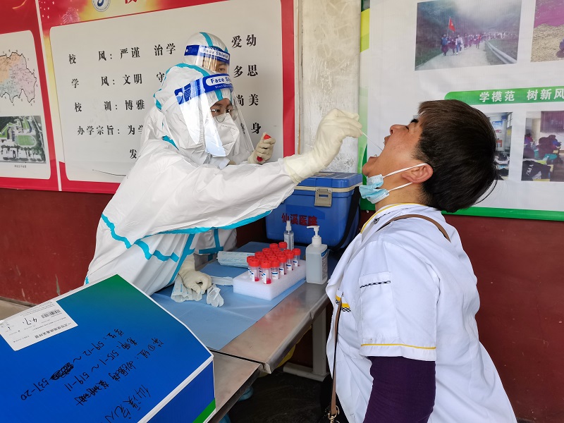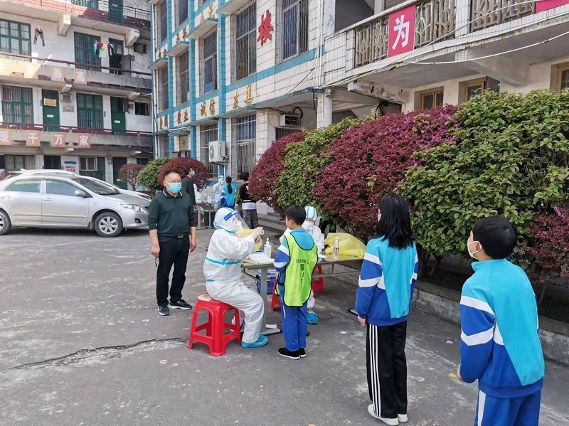 本网讯 4月7日下午,仙溪镇完小全体教职员工、学生1400多人参加核酸检测,仙溪镇中心学校校长刘慈军等领导亲临现场督查检测工作。 核酸检测在学校操场进行,全体教职工、学生每十人为一小组,在政教处主任简志亮老师的组织下,由班主任带领来到指定地点开始等待核酸检测。全体教职工、学生前后间隔一米安全线,站队整齐,排列有序。检测完毕后,按照顺序有序回到班级。 仙溪镇公卫办医护人员身穿密不透气的防护服,冲锋在核酸检测一线,仙溪镇中心校领导们也全程跟踪参与,积极协助排队。在老师的指导下,所有学生严格遵守疫情防控相关规定,全程佩戴口罩,有序排队等候,检测工作顺利完成。 此次核酸检测是对全校师生疫情防控的精准大排查,为科学、精准、快速、高效防控新冠肺炎疫情打下了坚实的基础,进一步筑牢了学校安全屏障。(通讯员 周艳红)
