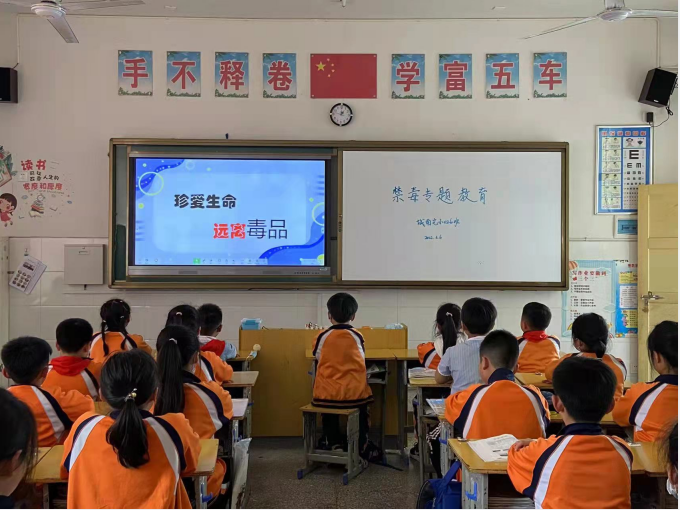 本网讯 一幅幅吸毒人员惨不忍睹的画面,一件件真实的吸毒案例,一桩桩因毒品而家破人亡的人间惨剧,深深震撼了学生的心灵…… 4月6日,东坪镇城南完小组织全校师生观看了《禁毒教育宣传片》。