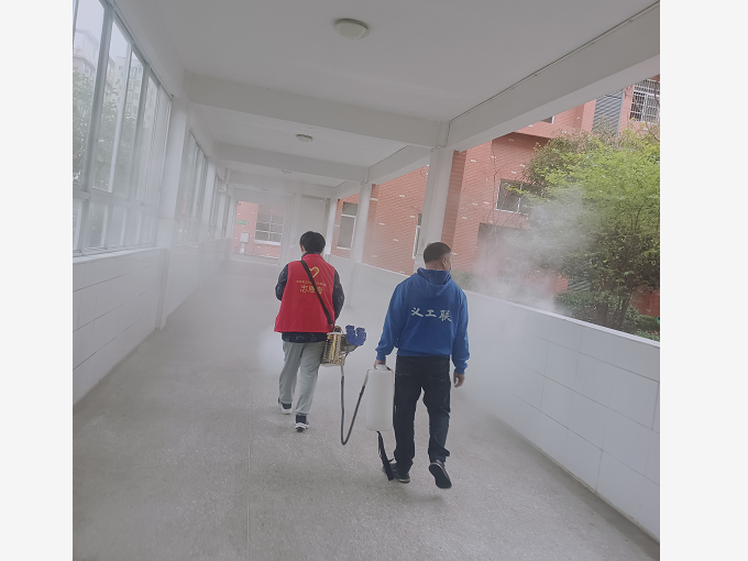 本网讯 “我是志愿者,我的校园我守护……”东坪镇城南完小疫情防控小小志愿者谢雅哲同学,在家长陪同下参加了安化县义工联疫情防控志愿者活动。 3月20日,义工联志愿者一行7人对城南完小进行全方位消毒工作。 消杀人员“披甲上阵”——身穿白色防护服,背着沉甸甸的药水桶,手持弥雾器,严格按照科学专业的流程,耐心细致地对校园各个角落进行彻底的消杀工作。工作人员分工明确,配合默契,对校园的食堂、教室、走廊、楼梯间、厕所等日常公共区域进行了全方位,无死角的喷洒消毒,抑制细菌滋生,为做好疫情防控常态化提供有力保障。 此次消杀行动,进一步优化了校园环境卫生,提升了学校常态化疫情防控水平,为广大师生营造了安全、健康、卫生的校园环境,“净”待学生返校。