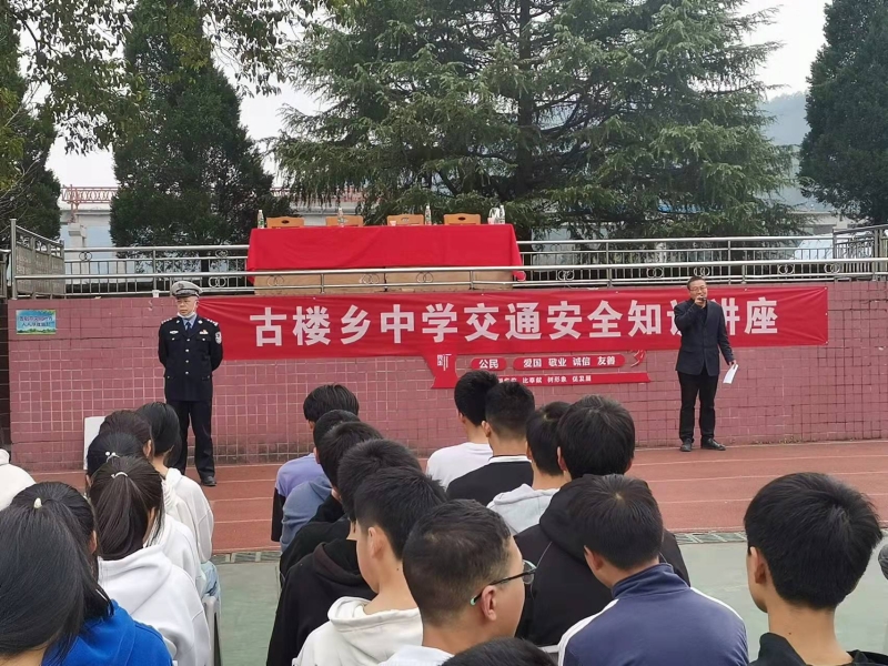 本网讯 3月17日,安化县交警大队田建勇、郭琼两位警官应邀来古楼乡中学举办交通安全知识讲座。