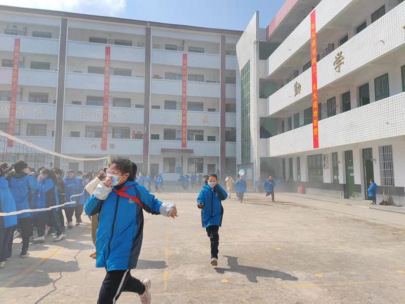 本网讯 2月24日下午,马路镇完小开展防震与消防安全疏散演练。教学楼烟雾缭绕,警报响起,学生用手捂住口鼻,弯腰低姿护头前行,有条不紊地沿着指定疏散路线,快速从楼梯疏散到操场,并由各班教师及时清点人数,整个过程井然有序。
