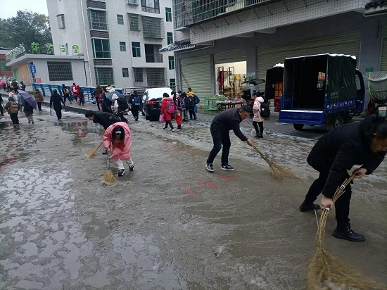 “路上的雪都融化成了水,我的鞋都湿掉了!”几个孩子一边走一边嘀咕。为了方便孩子们通行,党员教师们不畏严寒,积极主动、相互配合、齐心协力,挥舞着铁锹和扫帚,你铲我扫,一派热火朝天的景象,一点点地将积雪和积水集中处理到下水沟,尽管大家的脸都冻得通红通红,但是党旗所到之处,校园内外分外生辉。