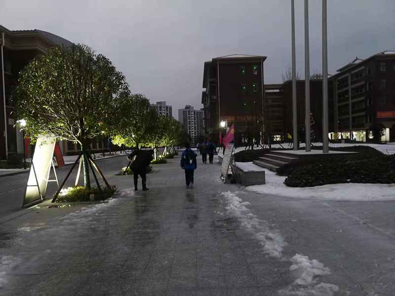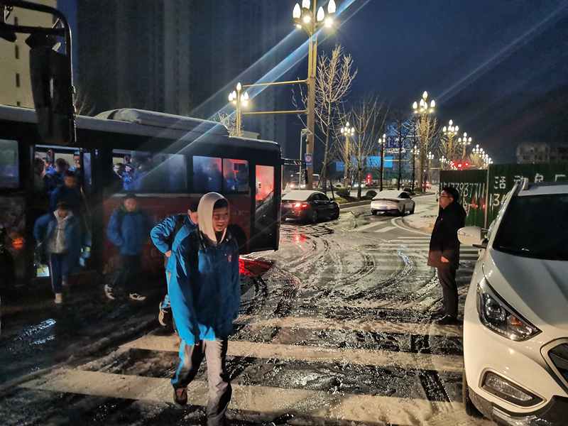 本网讯 2月18日清晨,安化县紫薇中学的工作群弹出消息“因天气恶劣,车辆不能上环山公路,学校紧急启动《雨雪冰冻天气应急预案》”。 天气骤变,路面沙雪严重,存在较大交通安全隐患。清早6点,该校党支部书记、校长曹文武和主管学校安全的副校长李华集以及部分管理人员,不畏严寒、冒着风雪来到该校环山公路入口,耐心劝导所有车辆禁止爬坡通行,指挥接送学生的公交车有序停放,并组织和护送学生列队步行上学。这一幕刚好被东坪镇中心学校副校长李建民暗访巧遇,他对该校的安全应急处理表示肯定,并高度赞扬了管理人员爱岗敬业的精神。 校园要道上的积雪也被细心清理,从学校大门到教学楼,从学生宿舍到食堂,学校的教师和门卫师傅为孩子们开辟了一条条安全通道,确保了全校师生安全。(通讯员 肖静和 李晴)