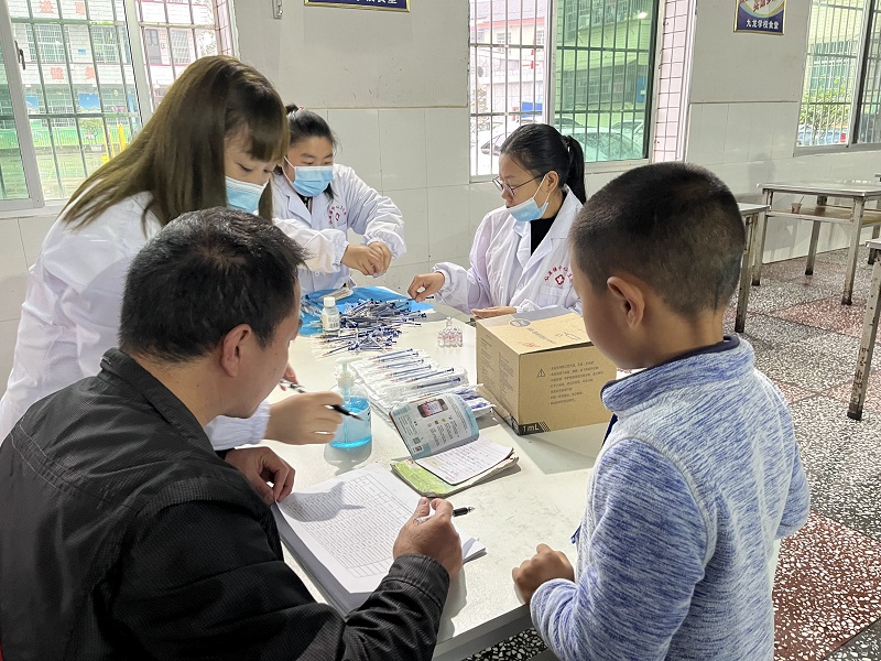 本网讯 11月4日上午,安化县仙溪镇中心卫生院公卫办副主任吴准星等一行人来到九龙学校检查指导3-11岁学生新冠肺炎疫苗接种工作。 九龙学校接种现场,在政教主任兼安全专干张允毅的指引下督促学生保持安全距离,有序排队,在咨询处提交接种知情书和查看、记录儿童预防接种证后,依次到相关护士处接种,接种后在留观区,相关人员观察30分钟,由班主任带队返回教室。吴准星对该校的学生接种工作给予了高度肯定,认为该校组织有力,学生接种秩序井然。 为做好该校学生在校接种工作,学校领导高度重视,从安排到执行全程无缝衔接,教师们各尽其责,以高强的执行力、高度的责任感,完成了本次学生的接种工作。(通讯员 方学文)