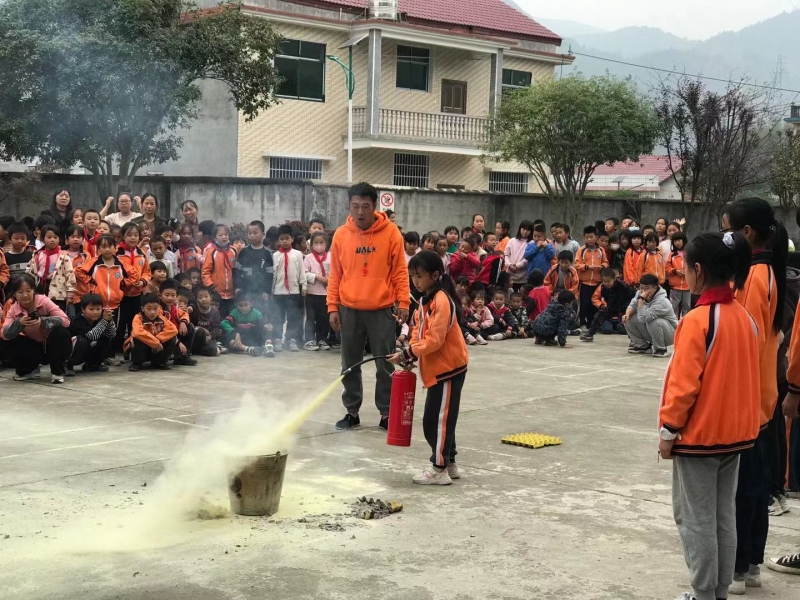 本网讯 11月3日下午,南金乡完小组织开展了消防演练活动。 16:35分,楼道烟雾弥漫,“安全疏散”警铃拉响,各班学生弯着腰、猫着步,捂住口鼻,有序撤离到学校操场的安全地带,随即各班主任教师清点人数并报告。“用时1分43秒”该校政教主任谢呈云对此次消防撤离时间感到满意,随后向大家讲解了灭火器的分类、使用要点及注意事项,并现场示范了干粉灭火器的使用步骤。大家认真学习后,学生们纷纷举手上前示范,按照学习的使用方法对模拟火场进行扑救,完成干粉灭火器的演练。 通过此次消防实操演练,使师生牢固树立“防风险、除隐患、遏事故”的消防安全意识和责任,增强了消防安全疏散和灭火应急救援能力。(通讯员 林志武)