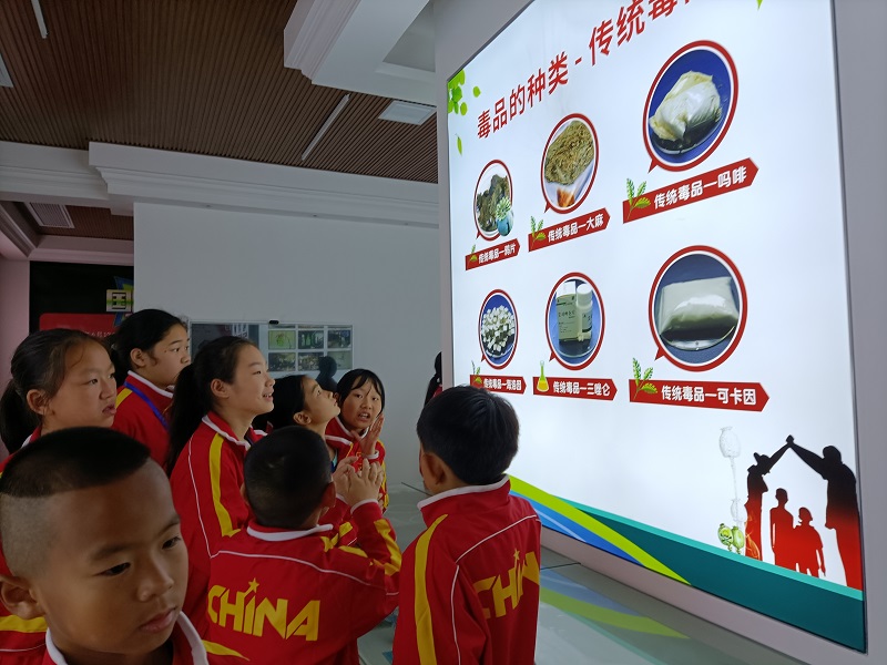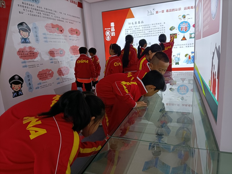 本网讯 10月29日上午,马路镇完小师生共计四十余人到安化县禁毒教育基地参观学习。 活动现场分成了毒品基础知识区、仿真毒品模型区、吸毒设备、拒毒防毒技巧区四个区域,同学们有序地参观禁毒教育基地。当看到触目惊心的展板时,同学们脸上没有刚进去时的兴奋,更多的是沉思,在展板前面久久观望。通过老师的讲解同学们对于毒品危害有了深刻认识。之后,老师们又介绍了防毒拒毒的技巧以及与禁毒相关的法律法规,呼吁同学们珍爱生命,远离毒品,不要轻易相信陌生人,并号召广大师生要主动宣传毒品的危害性,时刻保持高度警惕,勇于举报涉毒行为,积极参与禁毒人民战争。参观结束后,副校长唐敏忠还要求学生们写参观后的心得体会,加深对毒品的认识。 唐敏忠认为要充分发挥学校主阵地作用,积极开展学生毒品预防专题教育,推动学校禁毒教育与家庭、社会禁毒教育有效衔接,在学生群体中营造浓厚的禁毒氛围,让青少年挺直生命的脊梁。(通讯员 邓翠玲)
