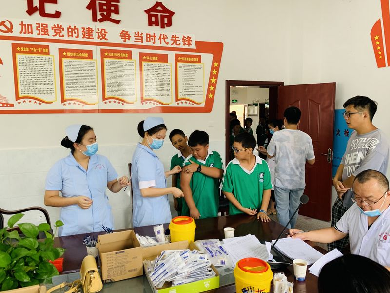 本网讯 “打完后,手臂针眼处要用棉签按压两三分钟,24小时内别碰水,3天内不要剧烈运动,多喝水。”安化县妇幼保健院的医生耐心叮嘱接种后的学生。9月13日上午,思源学校小会议室成了临时的“新冠”疫苗接种点。该校学生在政教处老师和班主任的组织下,前进后出,全程单向不反复,分批次、分时段进入接种点,分流、错峰有序接种。接种现场,严格候诊、预检、登记、接种、留观,各个流程,秩序井然,有条不紊。 接种新冠疫苗是预防新冠病毒,保障校园健康安全的最有效手段。至9月13日下午,思源学校全体教职工、学生(除无法接种者)已实现全部接种,筑牢了校园免疫屏障。(通讯员 邹辉华 王鑫炜 )
