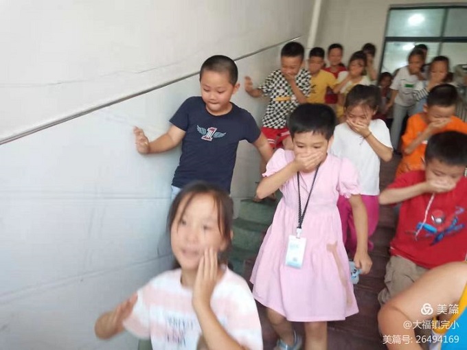 本网讯 大福镇完小于9月13日进行了消防安全紧急疏散演练。 下午1点30分,急促的警报声将全校师生带入了学校发生火灾的模拟情境中。总指挥校长虎贲宣布应急演练开始,并向全校发布“掩住口鼻、弯腰前行、有序小跑”的疏散指令。各年级各班的学生在班主任和各疏散岗位老师的有效组织下,有序快速地撤离到操场。 据了解,全校1700多名师生撤离总共用时2分06秒,各疏散通道的撤离队伍始终安静而有序。 政教处黄剑老师还对学生进行了消防安全知识培训,就火灾来临时如何报警、火灾的预防、火场自救等消防安全基本常识进行讲解,并就干粉灭火器的正确使用方法进行了现场讲解、示范、指导,进行了灭火实战消防演练。(通讯员 姚俊)