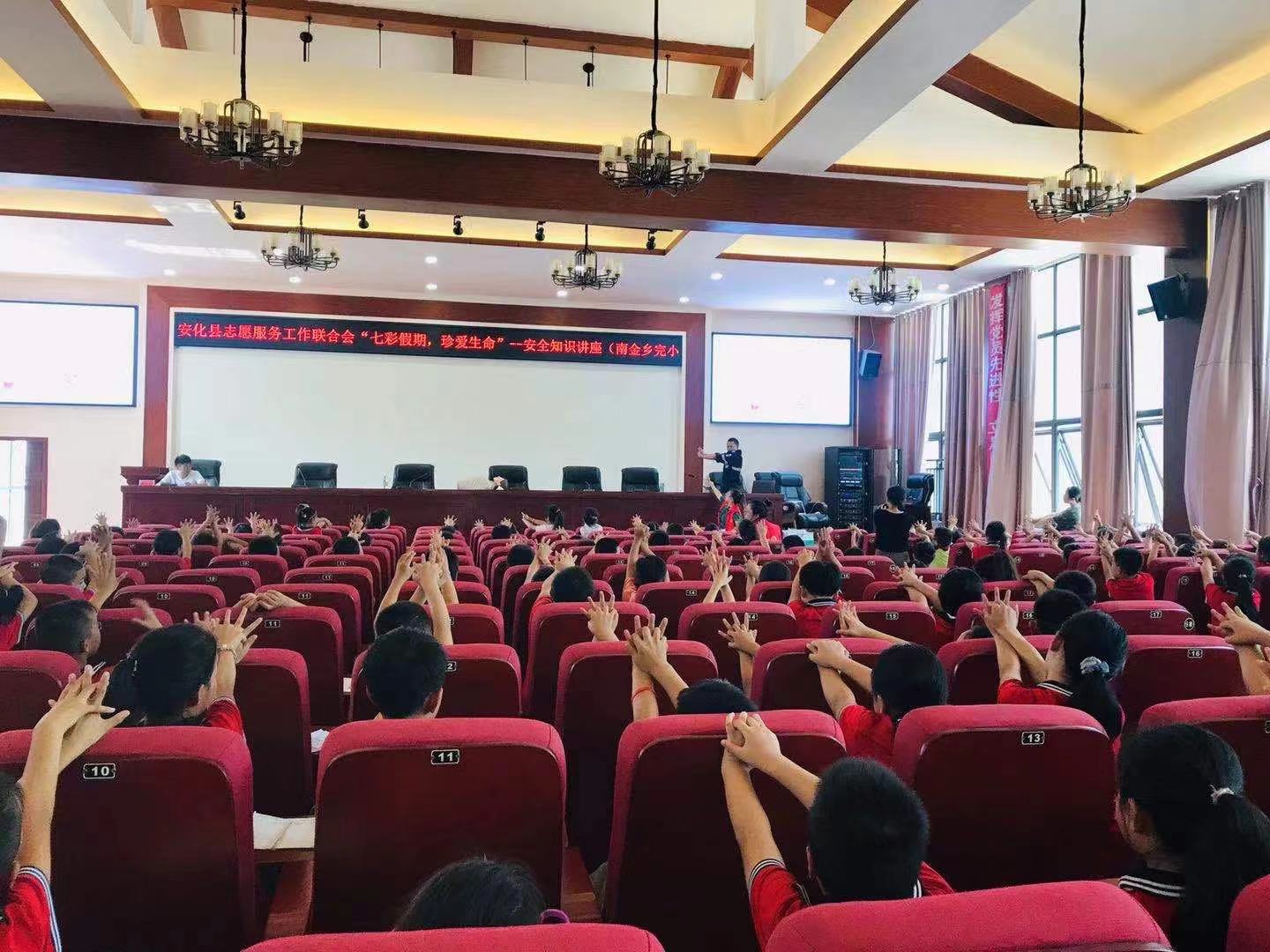 本网讯 9月5日,安化县志愿服务工作联合会应急救援队应邀在南金乡村委八楼会议室为学生开展安全知识讲座。 活动现场,志愿服务团队就“防溺水安全、心肺复苏、消防安全”三大方面对参会的师生展开教育。首先通过播放系列溺水事故的视频,让同学们真真切切的去感受其危险,以鲜活案例警醒学生珍爱生命,远离危险水域,谨防溺水。接着现场演示如何进行心肺复苏,并邀请师生参与互动体验,在实践中正确掌握心肺复苏的方法。最后向大家介绍了一些火灾的防护措施及自救知识。队长王创群呼吁大家提高安全意识,牢记安全知识,给生命加一道防线,既为自己负责,也为他人负责。 大家热情高涨,积极配合,提升安全意识的同时也掌握了更多自救互救的基本技能。讲座过后,志愿者服务团队又对南金乡完小、中心幼儿园和中学三所学校的消毒杀菌工作,为师生在校安全加固屏障。(通讯员