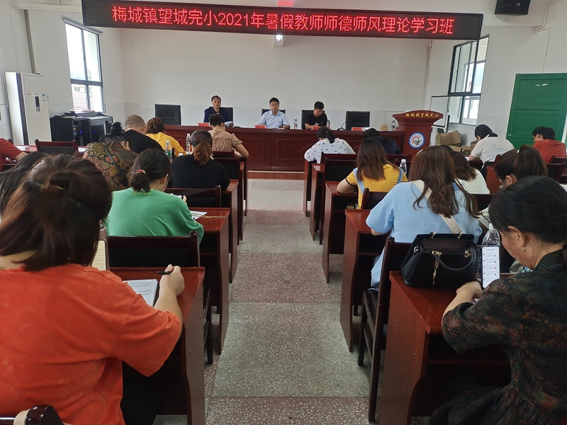 本网讯 8月27日上午,梅城镇望城完小2021年暑假师德师风理论学习班在该校幼教楼四楼会议室拉开序幕,该校全体在职教师参加了培训。会议由办公室主任李咏如主持。 副校长郭世佳组织全体教师原文学习了《中共中央办公厅国务院办公厅印发〈关于进一步减轻义务教育阶段学生作业负担和校外培训负担的意见〉》等上级要求本次学习培训必学清单的全部内容。教务主任董鸿亮作了教学质量分析报告,他从横向、纵向等多方面客观总结了该校教育教学各方面的成绩,指出了存在的不足,提出了教育教学建议。随后,校长李兴家作了专题辅导报告,强调作为教师要不忘教书育人的初心,牢记立德树人的使命。学校的发展要以教师为本,教师的素质要以师德为先,每一名教师都要将“以德修身,恪守师德;以德修己,弘扬师魂”作为自己的座右铭,时刻谨记作为一名人民教师的责任与使命。他提出了三点期望,希望老师们做一个“温文尔雅”的教者,做一个“静待花开”的智者,做一位有温度的望城教育人。 据悉,该校本次暑假教师培训共安排四天,在此后几天的培训中,安全工作、青年教师培训、班主任培训等,并将对新学期的教师工作进行分工定位。此次培训,议题多,内容广,27日上午持续三个多小时的讲座在参会教师中引起了强烈反响,纷纷表示将在今后的教学工作中不断提高质量标准、加强业务学习,提升自身能力,廉洁从教,立志做“四有”好老师,为望城教育的蓬勃发展贡献力量。(通讯员 李咏如)