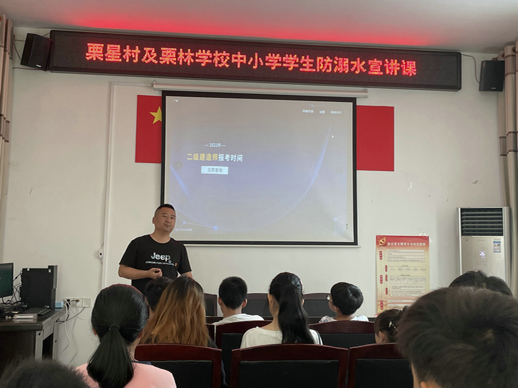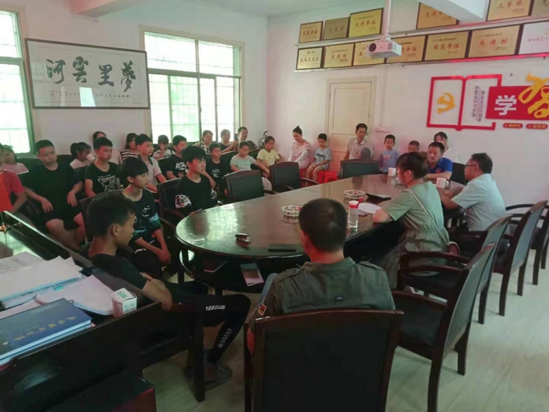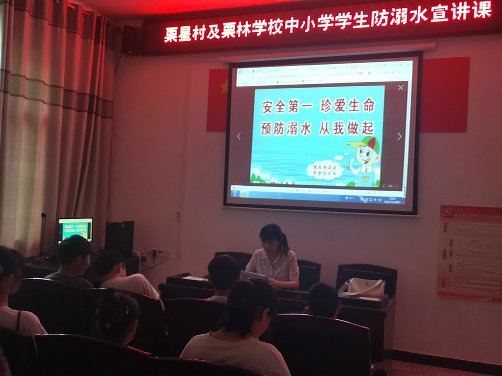 本网讯 7月13日,梅城镇栗林学校联合生源覆盖区8个村村委村支部开展全方位防溺水安全专题活动。 上午8点,栗林学校全体行政人员及部分教职工在中学部一楼会议室召开防溺水安全工作会。校长高飞传达了县局和中心校防溺水安全工作会议精神,分析了生源覆盖区防溺水安全工作的形势,通报了全省学生溺水事件,对此次防溺水安全专题活动作了部署安排。 参会人员分4个组,每组负责两个村,每村一站,分两站开展专题活动。要求每站完成五项规定动作:1、张贴防溺水安全宣传海报;2、组织到场人员签到登记;3、组织各村在读学生开展防溺水安全知识讲座;4、到各村水域进行防溺水安全隐患排查,设立防溺水安全警示牌;5、收集整理好照片资料。全体成员上午9点准时出发,驱车赶赴第一站,10点左右赶赴第二站,11点全体成员顺利完成任务。