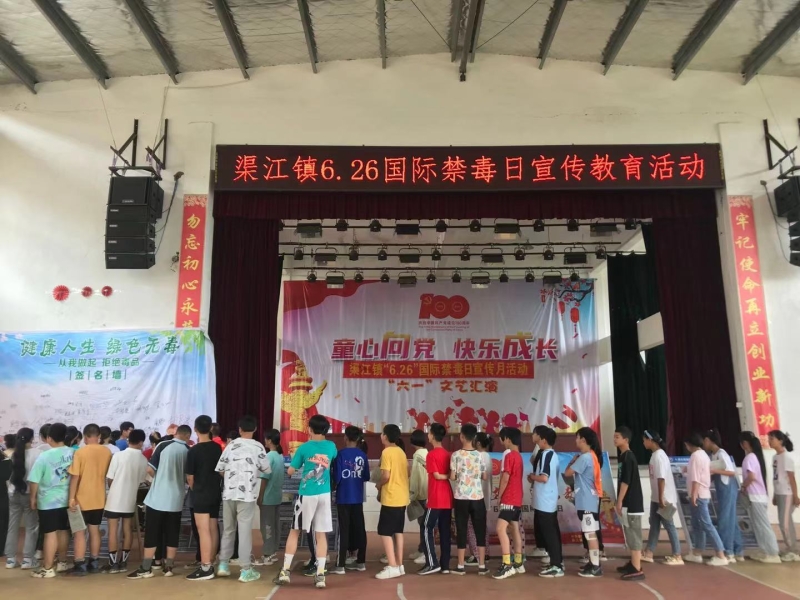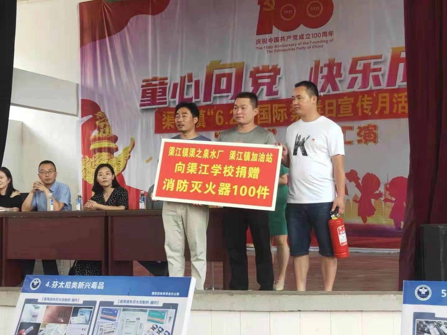 本网讯 6月26日是国际禁毒宣传日,为了落实校园“五个一”,强化禁毒宣传教育,营造浓厚的禁毒舆论氛围,渠江学校在举行学生禁毒、防溺水宣传教育活动暨消防灭火器材捐赠仪式。 活动上,首先由渠之泉水厂胡伟先生向学校捐赠了100件灭火器材。接着,渠江镇党委书记王烨书记就禁毒、防溺水工作进行强调讲话,要求学校、家长和社会充分认识到防溺水工作的重要性和紧迫性。然后,江镇派出所民警给我们带来禁毒、防毒知识讲座。民警教导同学们,远离毒品,预防溺水,珍爱生命。最后,学校组织全体学生参观禁毒宣传展板并在禁毒签名墙上签名。(通讯员 胡加田)