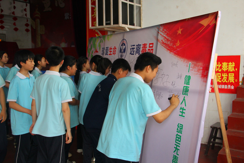 “我宣誓:坚决与毒魔作斗争,保证终身不吸毒、不贩毒、不制毒、不种毒……”,活动在师生的宣誓中达到高潮,师生们高举右拳郑重宣誓,声音响彻上空。誓言在校园上空久久回荡,给全体师生以巨大的警醒。