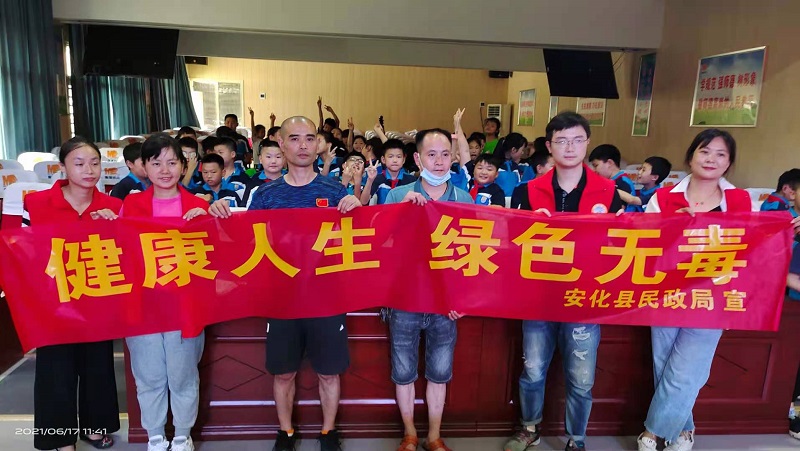 本网讯 为了迎接6月26日“国际禁毒日”,梅城镇完小进行了“远离毒品,多点联动”系列活动。安化县民政局、城东社区分别到学校组织禁毒宣传教育、禁毒教育进课堂活动,给同学们上了一堂堂精彩的禁毒教育课,受到了全体师生的热烈欢迎。教育课上,县民政局、城东社区禁毒工作人员通过多媒体的演示和深入浅出地讲解,将毒品的危害通俗易懂地表现在学生面前,使同学们充分认识到毒品及其危害性,提高学生的认知力和对毒品的防范能力。禁毒教育课上,一幅幅触目惊心的图片和精彩的讲解,让同学们神情凝重。同学们知晓了更多的毒品的危害,增强了学生对毒品防范意识。 学校还通过“小手拉大手”、禁毒手抄报等活动,将禁毒意识传到辖区每个人心中,让大家认识到毒品给人们带来的伤害和困难,远离毒品,健康生活。(通讯员:姚钢台 高永健)