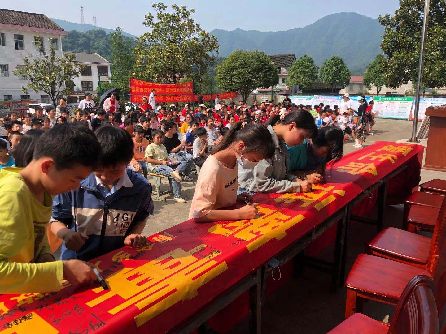 本网讯 6月23日上午,南金乡政府联合各部门站所到南金乡中学开展校园毒品预防教育宣传活动。中心校校长胡毅、南金乡完小五、六年级及中学全体师生参加,活动由乡武装部长陈勇刚主持。 派出所所长伍向红向学生普及禁毒知识,让学生深入了解毒品带来的危害,并通过宣讲相关禁毒的法规政策,增强学生防毒意识和防毒能力。 禁毒办组织全体人员集体宣誓:自觉抵制毒品侵蚀,积极投身于禁毒斗争行列,积极检举吸毒贩毒行为,为国家禁毒事业做贡献,并在横幅上集体签名以示禁毒的决心。乡党委委员伍丹发表讲话,他强调校园安全和禁毒工作任重而道远,必须政府、部门站所、学校和社会多方发力,携手共同守护校园平安。 这一系列宣教活动营造了浓厚的校园禁毒宣传氛围,有效地引导全校师生珍爱生命,远离毒品,使禁毒宣传更加深入人心。(通讯员 夏晓媛)