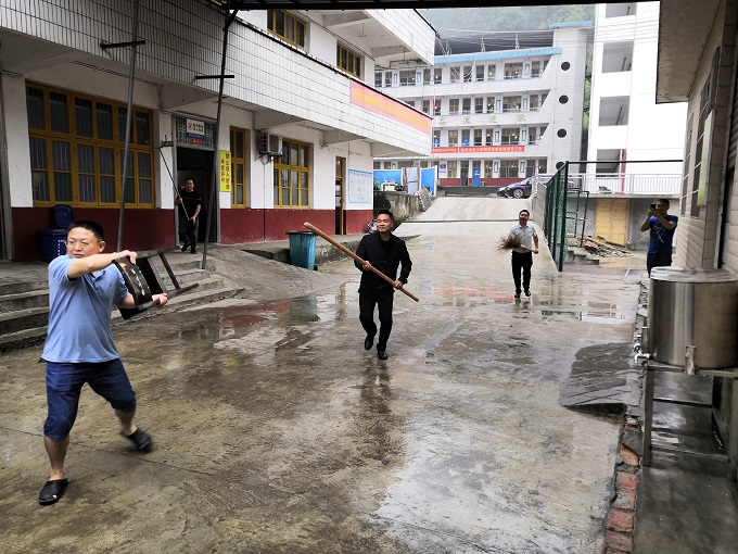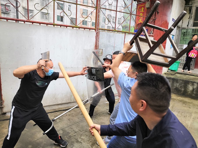 本网讯 5月13日上午大福镇木孔中学举行反恐防暴应急演练。 政教主任肖锋组织工作人员学习演习方案并做好人员分工,强调本次演习的注意事项。演习正式开始,一蒙面男子手持凶器从校门口强行闯入,发现异常后,保安人员立即用钢叉盾牌全力制止“歹徒”进入校园,同时,按响一键式报警器,并将情况报告给校长刘辉。校长在第一时间赶赴现场,负责整个事件的处置指挥。学校护校队人员手持防护器械迅速赶往校门口配合保安阻拦蒙面男子,并制止歹徒进一步走向校园。当日值日行政人员唐宏杰在第一时间赶到现场,负责疏散学生,拨打报警电话110和急救电话120。正在上课的老师负责保护好班级里的学生,室外课的老师迅速组织学生返回教室,办公室没有上课的老师负责走廊和楼梯,防止暴徒进入教室。最终“犯罪分子“被成功制服。 据悉,木孔中学每年都会举办各种安全演习,提高师生的安全意识。(通讯员 唐宏杰)