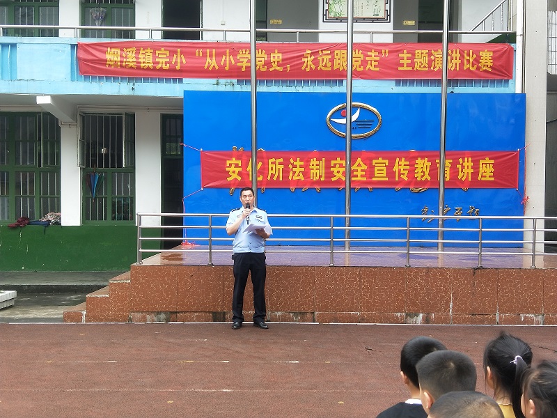 本网讯 5月12日,烟溪镇完小邀请了怀化铁路安化站派出所副所长瞿吉美、民警李飞进为全校学生进行了 “知路·爱路·护路”的安全教育讲座。