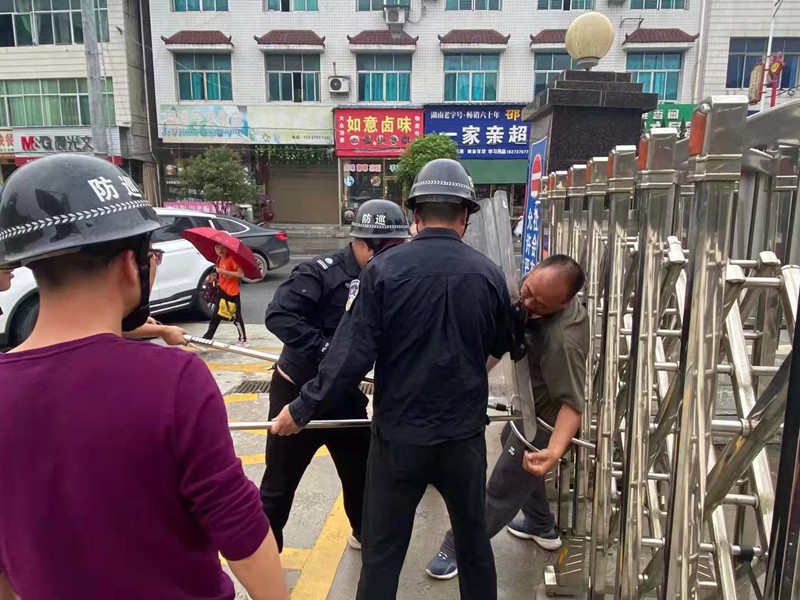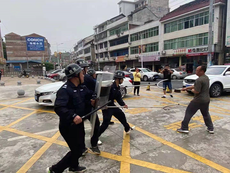 本网讯 5月11日下午,清塘铺镇中学举行了反恐防暴演练活动。 下午5点10分,正值学生晚餐高峰期。学校保安发现一名形迹可疑的男子(学校老师扮演)在校门口徘徊,通过观察发现该男子携带有菜刀等凶器,极有可能对学生造成伤害。学校保安立即将情况向政教处报告,指挥组立即启动应急预案。学校护校队成员携带器械赶到事发地点,此时,狂躁的歹徒挥舞菜刀,欲强行闯入校园行凶。赶到的护校队员、学校保安,与歹徒巧妙周旋、英勇搏斗,最后将歹徒成功制服,并移交给当地派出所处置。 演练结束后,政教处副主任周伟宏进行了点评,他要求全体师生要以此次演练为契机,牢固树立“安全第一,珍爱生命”的意识,提高自己面对恐怖袭击时的应变能力和自护能力。(通讯员:张剑文、周伟宏)