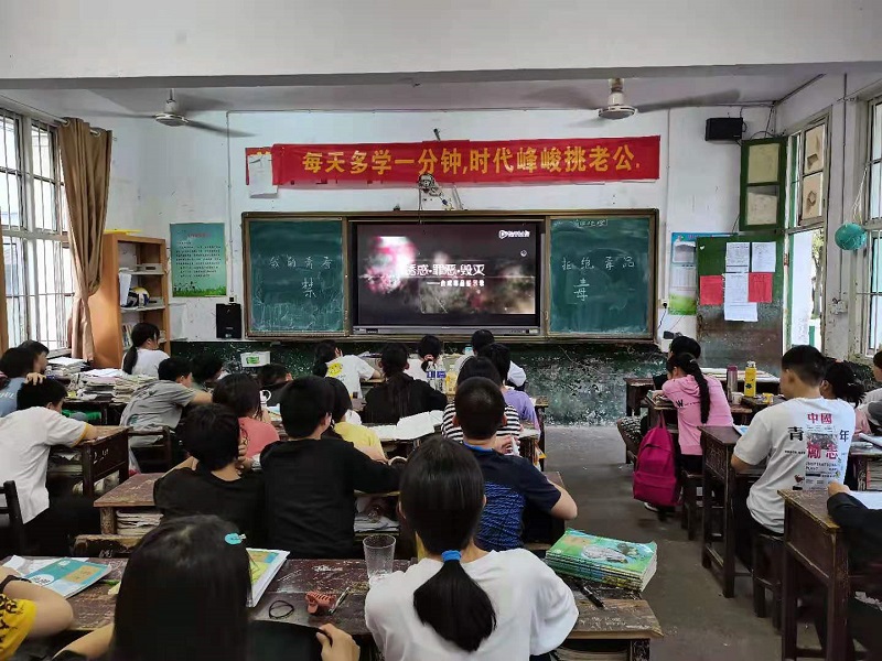 本网讯 5月9日晚自习,小淹镇中学校政教处组织各班举行“我的青春,拒绝毒品”的主题班会。