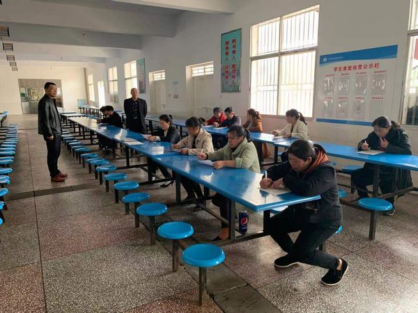 本网讯 4月27日下午1时,江南镇中学在食堂进行食品安全知识竞赛,14名食品从业人员全部参加。