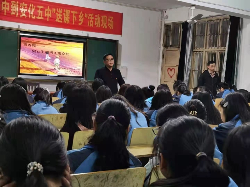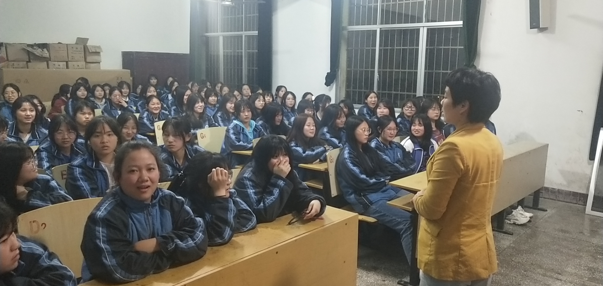 本网讯 4月18-19日晚,安化五中学生处组织高一、高二女生开展如何与异性正常交往的讲座。安化五中党支部书记、校长龚加宜,责任督学、副校长刘飞舞,副校长王小艳参与了本次活动。