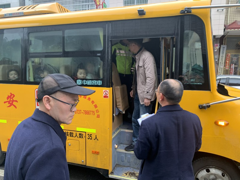 会后,各成员单位派出精干力量,文武和李昌武带队分两组对镇完小两个校区、回春完小、太平完小,八条校车线路,四台校车进行安全督查,按照《益阳市校车办关于开展校车安全隐患大排查大整改大教育行动的紧急通知》的相关要求进行,重点整治无照管员和不按“五定”要求接送行为;学生是否系安全带;超员、超速,违法跨区域、超线路运营等行为;准驾不符及未取得校车准驾资质驾驶校车行为;安全设施设备不全,违规改装车辆行为;未按省人民政府令(第277号)落实交接手续和校车发车查验等行为;通校线路安全防护设施情况;其他违法违规行为等。经查,校车营运整体规范,交接手续到位,未发现非法车辆接送学生,校车线路通畅,4月12日所发现的湘HB1083和湘HB1418两台校车存在的问题(灭火器过期)均已整改到位。
