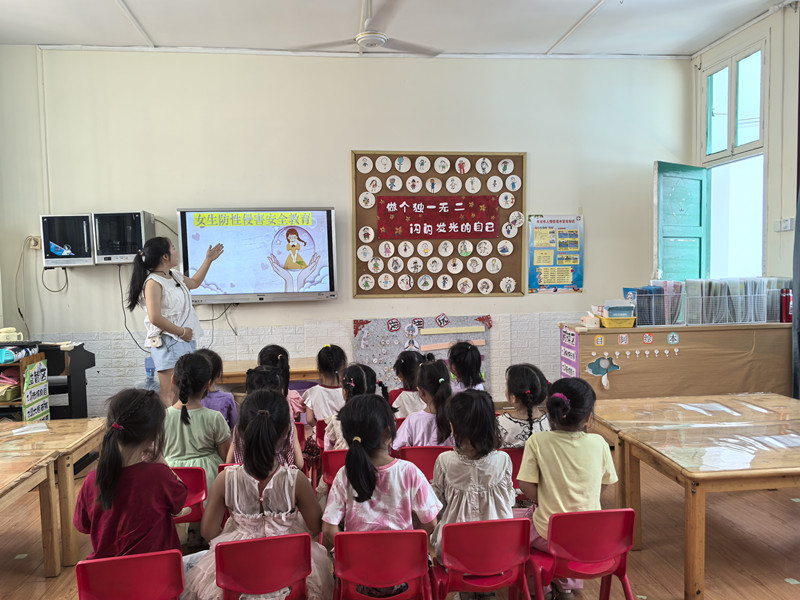 随后,各班观看防性侵教育专题片。专题片以情景模拟的方式,生动展现幼儿可能遇到的安全场景,如陌生人给零食要求抱抱、熟人过度触碰隐私部位等,直观教会幼儿辨别危险行为。 考虑到不同性别幼儿的认知特点与保护需求,各班还组织分性别防性侵教育课。针对男孩、女孩分别设计教学内容:对女孩侧重“如何拒绝不当肢体接触、不轻易跟陌生人走”;对男孩则强调“尊重他人身体边界、遇到危险及时向老师和家长求助”。授课过程中,教师通过角色扮演、情景演练,让幼儿在实践中掌握应对方法,确保教育更具针对性与实效性。