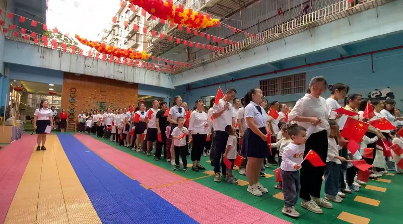 本网讯 金秋送爽,双节同庆。9月30日,启稚幼儿园林家村园开展“食庆华诞·月满中秋”亲子活动,两百组家庭齐聚校园,共赴节日之约。 活动伊始,萌娃与家长组成方阵,伴随《红旗飘飘》有序入场;庄严的升旗仪式上,五星红旗冉冉升起,师幼、家长共同行注目礼,厚植爱国情怀。随后,大班幼儿舞蹈《采茶声声》灵动上演,园长妈妈致辞送上节日祝福。 最受期待的自由游园环节,游戏区趣味挑战、手工区扎染剪纸、美食区香甜点心轮番登场,孩子们在体验中感受传统魅力与欢乐。活动尾声,孩子们领取中秋月饼礼物,满载喜悦而归。 初审初校:陈涛 复审复校:陶金平 终审终校:刘俊