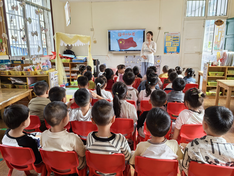 本网讯 9月28日,为让幼儿感受国庆节的喜庆氛围,了解祖国历史,厚植爱国情怀,,仙溪镇中心幼儿园以“喜迎国庆,童心筑梦”为主题,开展国庆节由来科普与国旗手工制作活动,让孩子们在互动与实践中迎接国庆佳节。 活动伊始,各班老师通过生动的动画短片、趣味绘本故事,向孩子们讲解国庆节的由来:1949年10月1日,中华人民共和国成立,毛主席在天安门城楼上庄严宣告新中国诞生,从此每年的10月1日成为全国人民共同庆祝的国庆节,这是祖国妈妈的“生日”。老师用孩子们易懂的语言,结合天安门、五星红旗下的阅兵场景图片,让“祖国”“国庆”的概念变得具体可感。